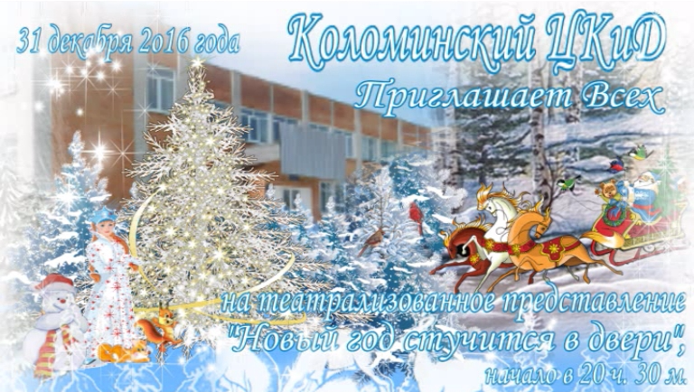 31 декабря Коломиногривский ЦКиД приглашает друзей на театрализованное представление, начало в 20 ч. 30 м.