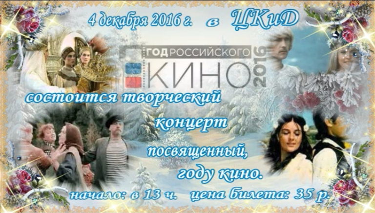 4 декабря 2016 года в ЦКиД состоится отчетный концерт посвященный, году кино.