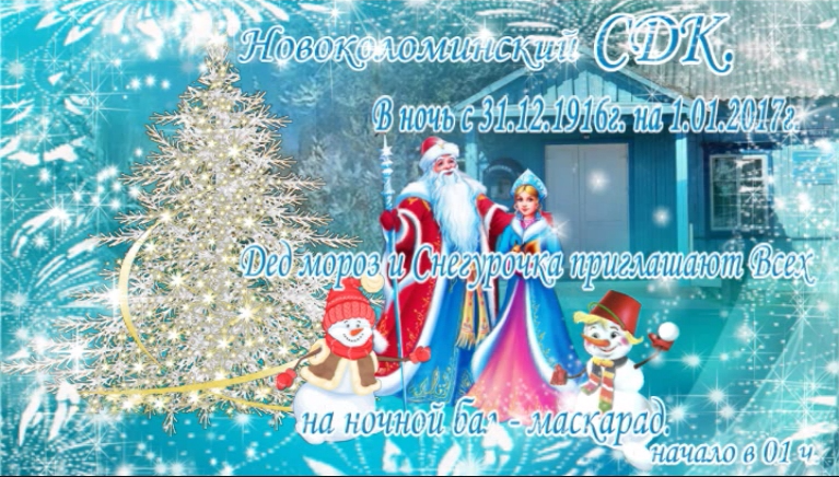 В ночь с 31 декабря 2016 года на 1 января 2017 года в 01 ч. Новоколоминский СДК приглашает на ночной бал-маскарад.