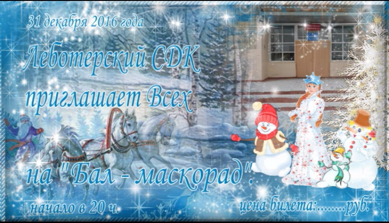 31 декабря 2016 года в 20 часов Леботерский СДК приглашает на "Бал-маскарад".