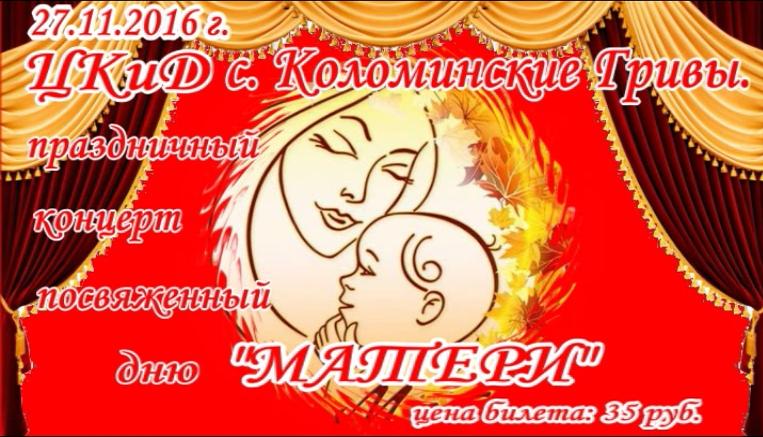 27 ноября 2016 года в ЦКиД состоится праздничная концертно - развлекательная программа.