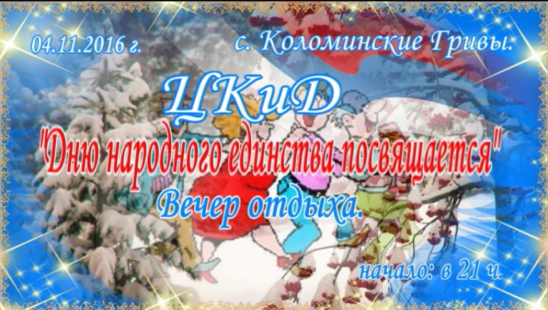 4 ноября 2016 года в ЦКиД состоится вечер отдыха.