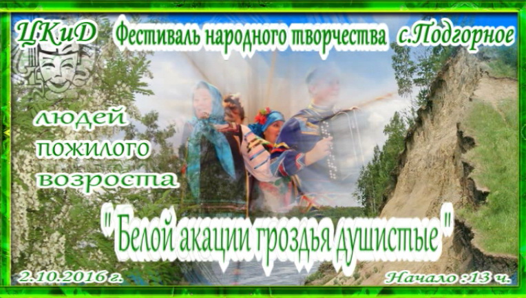 | 2 октября 2016 года в ЦКиД с. Подгорное, культура Коломинского поселения принимает участие в районном Фестиваль "Белой акации гроздья душистые". |