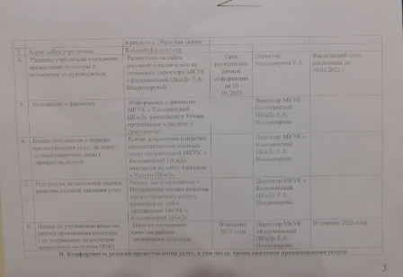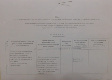 План по устранению недостатков в ходе независимой оценки качества условий оказания услуг.