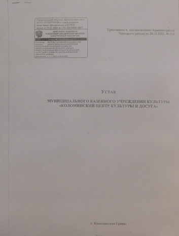Устав муниципального казенного учреждения культуры «Коломинский центр культуры и досуга»