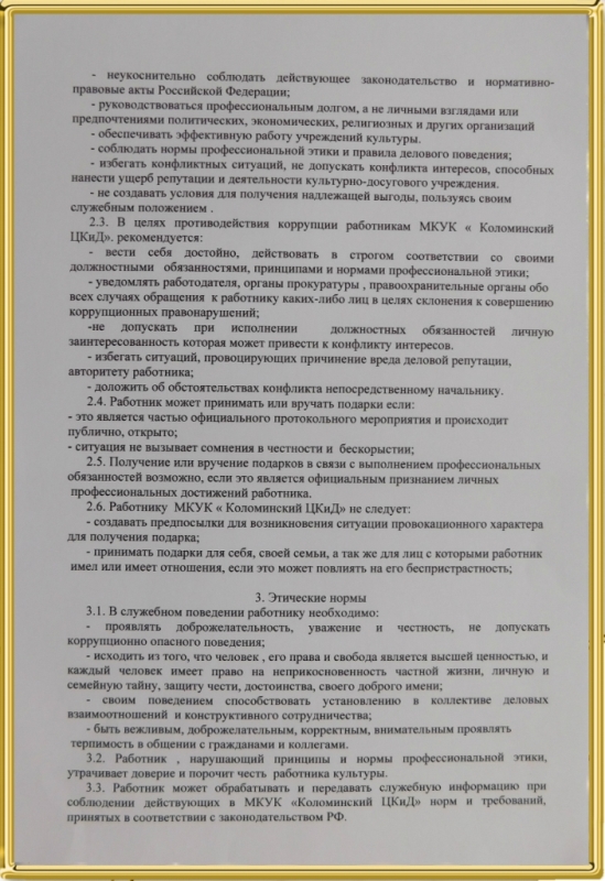 Кодекс профессиональной этики и служебного поведения работников МКУК "Коломинский ЦКиД".