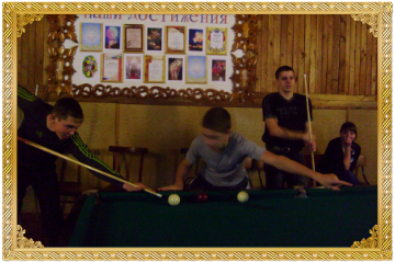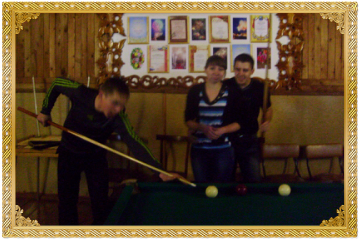 Клуб по интересам "Золотой шар" Клуб работает три раза в неделю. Участники клуба, это взрослое и молодое населения с. Обского. Жители села с удовольствием приходят в часы досуга покатать шары на бильярде. |