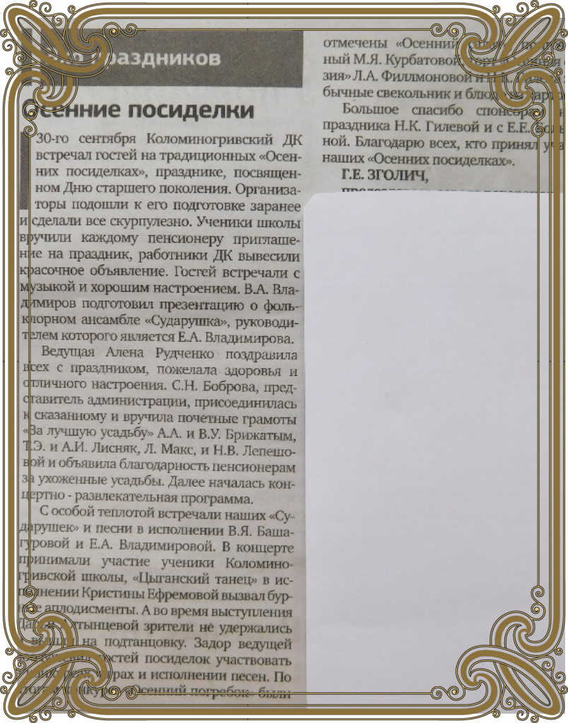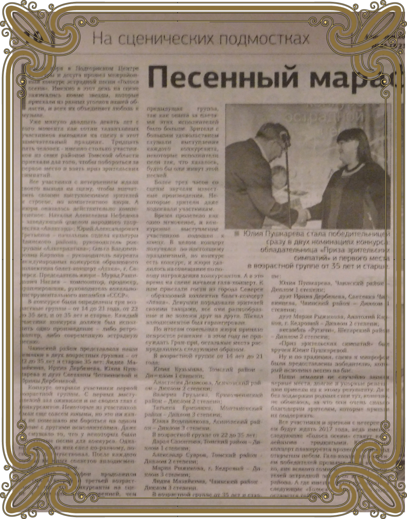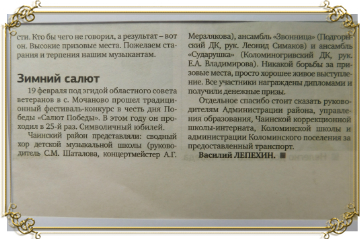 СМИ о Нас."Земля Чаинская" о Нас.