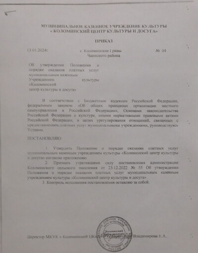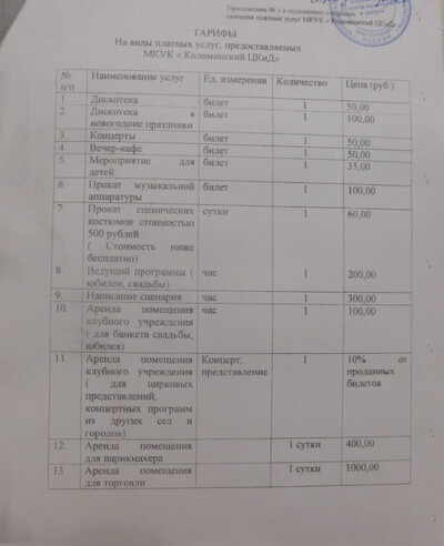 | Перечень платных услуг, предоставляемых Муниципальным казенным учреждением культуры "Коломинский центр культуры и досуга" |