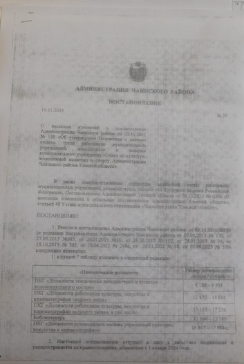 ПОСТАНОВЛЕНИЕ 29.Постановление Администрации Чаинского района №29