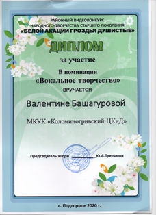 01.10.2020 г. был проведен онлайн - конкурс Белой акации гроздья душистые". Коломинский ЦкиД был отмечен дипломом за участие.